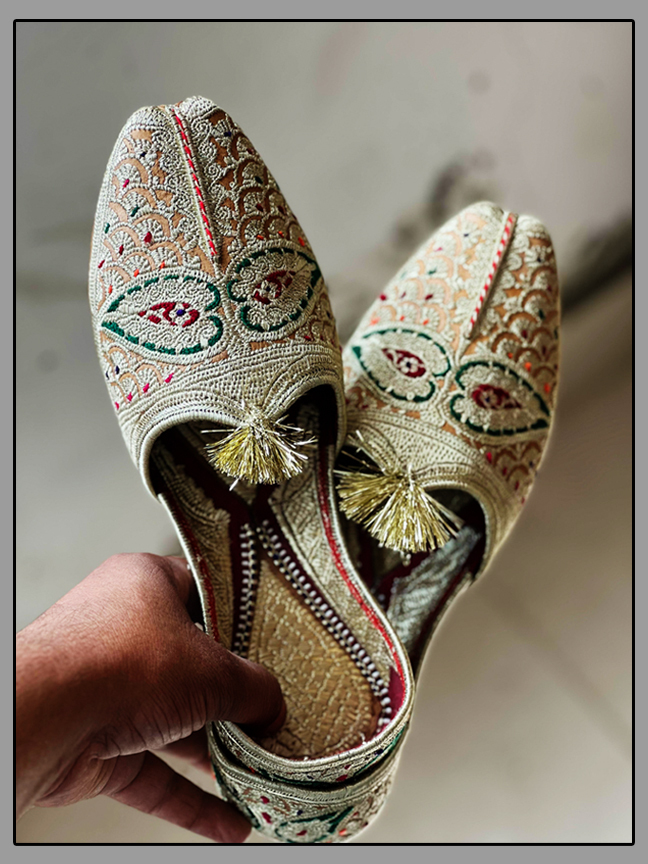 "Wearing Punjabi Juttis makes me feel connected to my roots. They are perfect for any occasion."